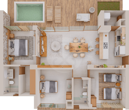 De igual forma, el condominio ofrece amenidades y servicios como lobby, lavandería, fire pit, hamacas, cinema al aire libre, asoleaderos, áreas de paisaje, bicicletas, sky bar, alberca, jacuzzi, rooftop panorámico y planta de tratamiento de agua, cctv, acceso controlado y vigilancia.