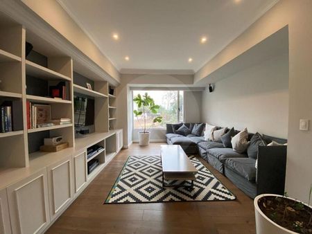 Bonito family con mueble empotrado con repisas y espacio para TV