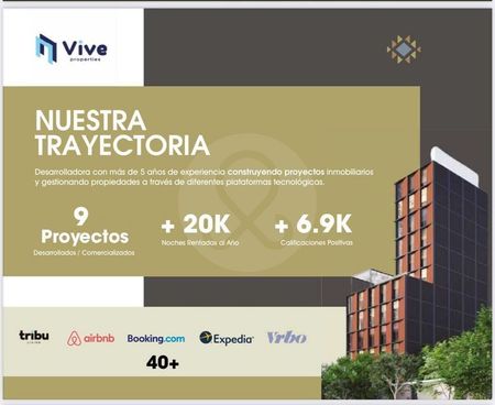 Amenidades : terraza usos múltiples, área de yoga, roof con Sky bar, lobby. Inversion segura y rentable Grupo VEQ con más de 20 años de experiencia entregando en tiempo y forma los productos. Además tenemos 20% a la firma de contrato de compraventa y el 80% a la entrega puede ser con crédito bancario y nosotros te lo tramitamos con las mejores condiciones.