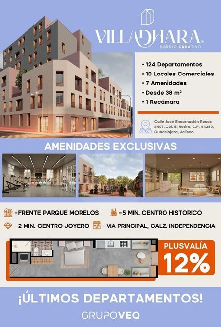Villa Morelos, invierte en el corazón de Guadalajara, ubicado en una zona con alta intensidad social y cultural, ideal para inversión con los mejores rendimientos y alta plusvalía.