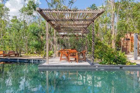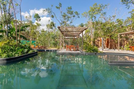 Con una ubicación privilegiada y una arquitectura que se integra perfectamente con el entorno, Aldea Savia es el lugar ideal para aquellos que buscan un estilo de vida tranquilo y en contacto con la naturaleza en Tulum.