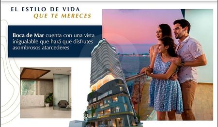 Boca de mar, en una torre de condominios a la orilla del mar, con espectaculares vistas, es una torre inteligente con elevador panorámico, en el lugar mas exclusivo de Mazatlán