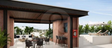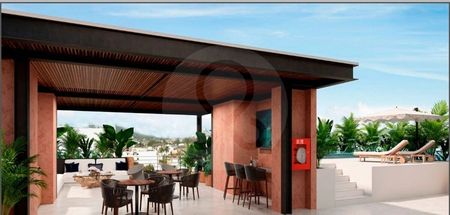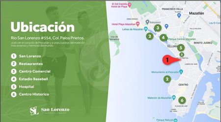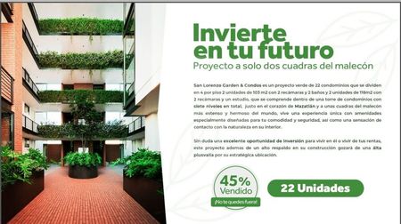 Hermosos departamentos San Lorenzo Garden and Condos en venta en Col. Palos Prietos, Mazatlán, Sinaloa. Consta de 2 recamaras estudio. Área Habitable: 114.42 m2. Balcón: 3.87 m2. Terraza: 16.5 m2