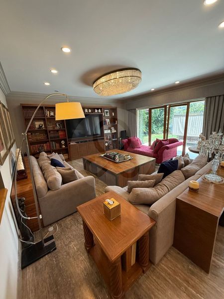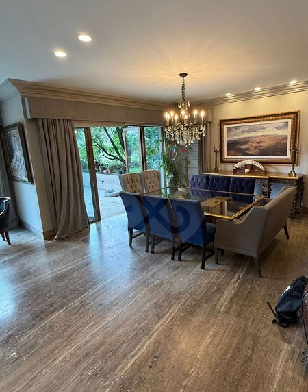 Gran sala comedor con acceso a un precioso y amplio jardin trasero. Lindísima concina, con vista al jardin frontal. Anexo un gran cuarto de lavado. Un nivel abajo un gran area con cuartos de servicio.