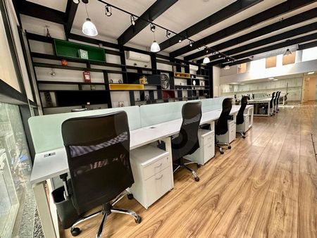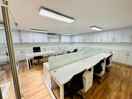 Privado con División de Cristal: Espacio para 3 escritorios, hasta 9 personas y gavetas para documentos