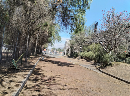 Banqueta lateral en todo lo largo del terreno, delimitada con malla perimetral