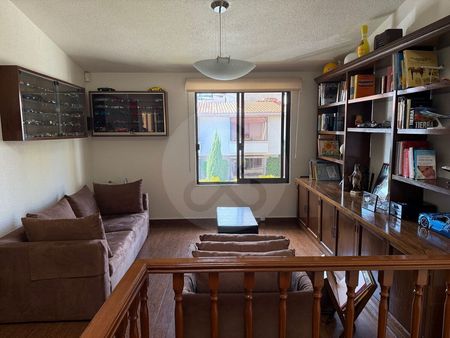 Excelente casa en condominio en San Jerónimo Lídice. A unos minutos de la Glorieta de la Bandera. Condominio Horizontal de 30 casas, en calle cerrada, muy tranquila. Cuenta con dos niveles. En Pb se encuentra el recibidor, amplia sala comedor con salida a patio/jardín con dos bodegas, cocina con antecomedor y despensa. Junto a la cocina se encuentra un family con televisión. Cuarto de servicio con baño y área de lavado. En primer piso se encuentran tres recámaras, todas con baño. Amplia recámara principal, con vestidor y espacio para una sala. De las recámara secundarias, una cuenta con vestidor y la otra con closet. En medio de las recámaras se encuentra la sala de televisión familiar, bodega y closet de blancos Lugar de estacionamiento para 5 coches. Hay lugar de estacionamiento para visitas para 6 coches. Vigilancia las 24 horas. Cuota de mantenimiento $3,500. La entrada oficial es por San Bernabé 404. La entrada principal es por la calle de Cerrada de Presa Escolta 44.