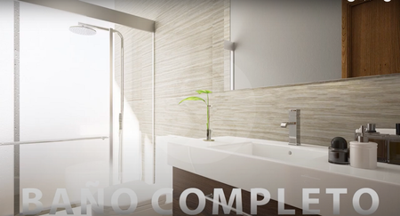 Baños: Muebles One Piece, cubiertas de granito y canceles de cristal templado.