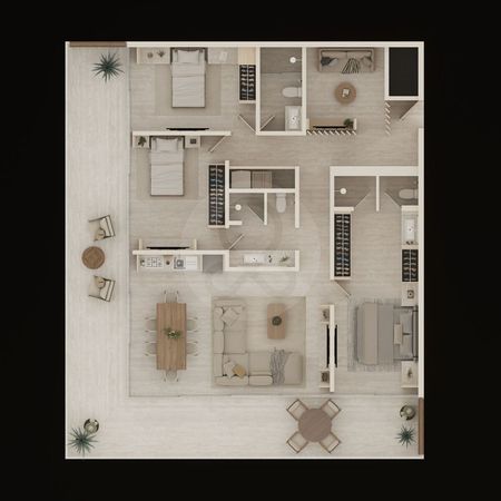 Exclusivos departamentos en esquina de 4 recámaras y 3 baños, con terrazas de hasta 55 m². Una de las unidades más atractivas de Hideaways, con acabados premium, amplitud y privacidad.
