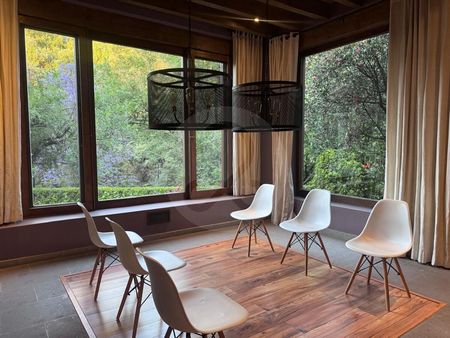 Preciosa casa, desde todos los espacios de la casa tienes una linda vista arbolada, muy acogedora, con sala de doble altura y chimenea, gran comedor, increíble cocina completamente equipada, cuarto de juegos, sala de Tv, tres amplias recámaras, con una linda distribución, cada una cuenta con baño y vestidor, cuarto de Tv muy acogedor, garage para tres autos grandes, una muy completa área de servicio, jardin, no te la pierdas!