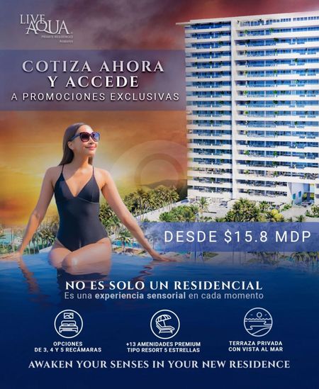 Live Aqua Acapulco Residences fusiona el lujo de un resort cinco estrellas con la privacidad de una residencia exclusiva. Cada espacio ha sido diseñado bajo el concepto True Dream by Live Aqua, ofreciendo una experiencia sensorial única, con interiores de alto diseño, materiales premium y vistas espectaculares al mar.