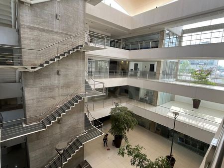 Este edificio corporativo ofrece un entorno profesional con seguridad 24/7, control y registro de acceso, elevador, terraza, máquinas expendedoras y áreas comunes diseñadas para brindar comodidad a colaboradores y visitantes.