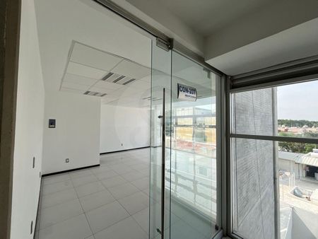 Actualmente hay varias oficinas disponibles con diferentes metrajes y presupuestos. Esta oficina en particular tiene una superficie de 41 mts, incluye un área de recepción privada, baños comunes en el mismo nivel y un cajón de estacionamiento en planta, ubicado en el primer nivel.
