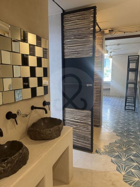 Cuenta con recepción, un cubículo privado, área de servicios con tarja y dos baños, lo que lo hace ideal para oficina, consultorio o espacio comercial.