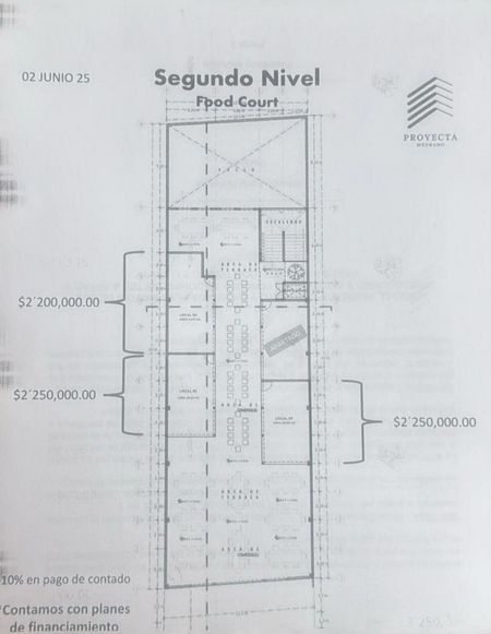 Se venden dos excelentes locales en el segundo nivel de un centro comercial en la zona de Medrano, Guadalajara. Estos espacios están exclusivamente designados para establecimientos de comida y se encuentran en etapa de pre-venta. Con una ubicación privilegiada en el corazón de Medrano, estos locales son una oportunidad ideal para inversores. Ambos locales cuentan con descuentos del 5% en pago al contado. Uno de los locales tiene 35 metros cuadrados y el otro 40 metros cuadrados. La propiedad en su totalidad abarca una superficie de 30 metros cuadrados, con orientación al norte y disposición frontal. No se detalla el año de construcción ni el estado actual de la propiedad. No se especifican gastos, habitaciones, recamaras, baños, baños de visitas, estacionamientos, ni zonificación. La superficie del techo es de 30 metros cuadrados techados, sin área semitechada ni descubierta. La dirección exacta es en la calle Fray Antonio de Segobia, con código postal 44840 en Guadalajara, Jalisco.