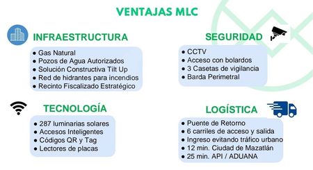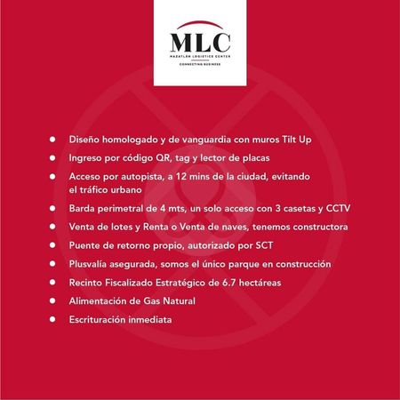Mazatlán Logistic Center (MLC), es el Único Centro Logístico con Recinto Fiscalizado Estratégico en el Noroeste del País con Bodegas y Terrenos de hasta 16,800 m2.