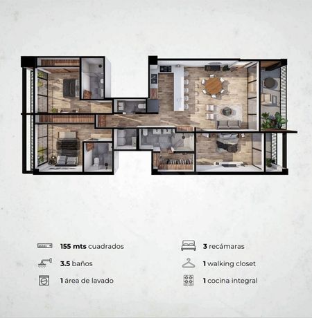 Unidades de 155mts, 3 recámaras, 3.5 baños, 2 estacionamientos, desde $8'525,000 pesos.