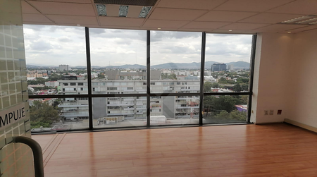 El edificio ofrece servicios como recepción y registro de visitas, vigilancia 24/7, baños en cada piso, áreas de fumar y valet parking.