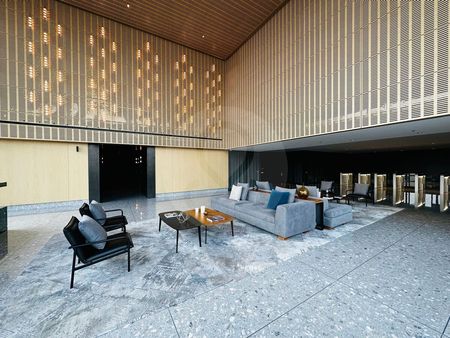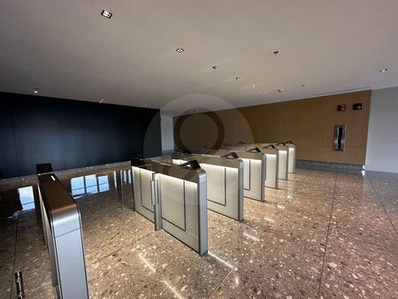 El edificio cuenta con varios elevadores, facilitando el acceso a los diferentes pisos.