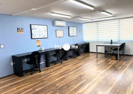 Excelente Oportunidad. Ubicada en el Pent House, 9.º piso, sobre Insurgentes, en una de las mejores colonias del Sur de la ciudad y de más fácil acceso. Cuenta con dos lobbys, 7 estaciones, 4 amplios espacios, 1 cubículo con cristal templado, 2 baños, sala de juntas y 1 oficina independiente. Elevador, vigilancia las 24 hrs y 2 estacionamientos. Frente al Metrobus, estación Francia y cerca de centros comerciales.