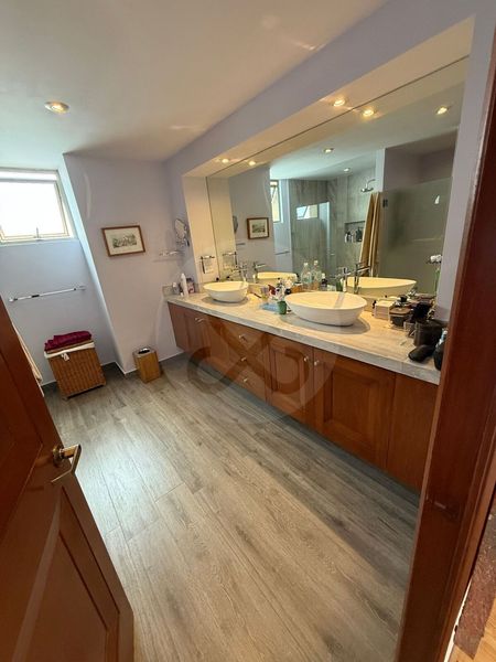 Enorme sala comedor, cuarto familiar, medio baño de visitas, hermosa cocina, tres recamaras cada una con su gran vestidor y baño, un espacio mas que puede utilizarse como recamara, biblioteca, o taller.