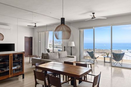 Penthouse totalmente equipado con vistas panorámicas sin obstrucciones, listo para habitarse. Ubicado en una de las zonas más exclusivas de Los Cabos, a solo dos minutos de supermercados y con acceso a una de las mejores rutas para caminar, hacer senderismo o ciclismo.