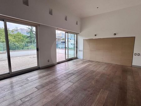 Con un total de 400m nos recibe un vestíbulo , de lado derecha cocina cerrada equipada con hornos y lavavajillas y cuarto de lavado y de servicio. A la izquierda una increíble estancia súper iluminada con vista a la copa de los árboles, dándole al departamento total privacidad. Junto una oficina con puerta corrediza para independizarse, con baño completo lo que podría convertirla en una cuarta recámara.