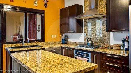 - Privacidad y elegancia:Techos abovedados, pisos de mármol, encimeras de granito y gruesos muros de concreto.