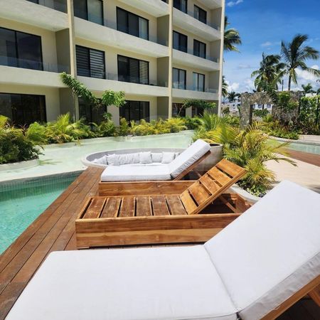 INCREIBLE DESARROLLO DE DEPARTAMENTO EN PRE-VENTA ENTRE LAS DOS ENTRADAS DE NUEVO VALLARTA, CASETA ESPECTACULAR DE INGRESO DE LUJO, ESTACIONAMIENTO AMPLIO AL INGRESO, AREA CENTRAL TOTALMENTE CUBIERTO DE AGUA CON ALBERCAS Y PAISAJISMO DE PRIMERA, ZONAS DE TERRAZAS INTERNAS, TERRAZA PRINCIPAL CON DISEÑO UNICO ENTORNO TOTALMENTE MISTICO, TERRAZAS DE ESTAR CON AREA DE CAMASTROS, TODOS LOS DEPARTAMENTOS VIENEN CON CARPINTERIA EN PAROTA. SE ENCUENTRAN EN TODOS LOS NIVELES MENOS EN PLATA BAJA, SE ENTREGAN EN AÑO Y MEDIO.