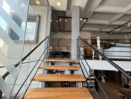 Tiene un área de 246.84m2 planta baja 151.70 m2 y Mezanine 95.13 dando a un ventanal muy alumbrado . Tiene buen espacio para cualquier tipo de giro