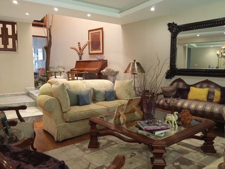 Lomas de Tecamachalco, impecable casa a la venta en Fuente de Lilas (Sl) Excelente estado de conservación. Cuenta con 370 mts de terreno, 560 de construcción, recibidor o vestíbulo, sala comedor con salida a el jardín, amplia cocina con dos alacenas, desayunador, closet de visitas y closet para guardar vajillas, pequeña bodega y cuarto de juegos. En el segundo nivel se encuentran las 3 recamaras con baño y vestidor cada una, la principal muy grande con salita, baño, vestidor y jacuzzi - sauna, y sala de T.V. Cuarto de lavado y cuarto de servicio, estacionamiento para 2 autos. Ubicada muy cerca de templos religiosos. La ubicación tiene, desarrollos constantes abren escuelas, centros comerciales, restaurant bar, etc. qué la zonas sea segura, van para arriba es decir tiene buena plus valía. Y la casa está en excelentes condiciones y remodelado en automático su valor es mayor. cuenta con jardín.