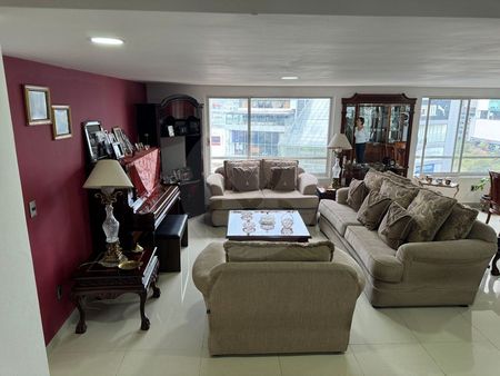 Precioso Residencial en venta departamento de dos pisos en La Campiña justo enfrente del centro comercial Santa Fe. cuenta el primer nivel: con sala comedor, con cantina, y baño de visitas, un cuarto de usos multiples con una mesa de villar y sala, un pequeño recibidor, cocina con varias despensas, cuarto de lavado y de servicio. en el segundo nivel se encuentran 4 recaparas con opcion a 5 recamaras,la principal con un vestidor muy amplio y baño, dos cuarto compartes baño y cuentan con closet, dos closet de blancos, 2 recamas con vestidor y baño. son 311 mts. cuenta con areas comunes: alberca techada, Gym, Jardin grande con area infantil, 2 area de mascotas,cancha de paddel, cancha de bascket, segurida 24 mantenimiento de $8,100 pesos y esta a la Venta en $12,000,000 pesos en excelente estado. cuenta con 3 elevadores y dos departamentos por piso.