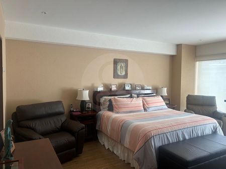 Departamento de 330m2 habitables, más una terraza amplia. 3 recamaras, cada una con su baño y vestidor, familly con balcón, antecomedor, sala, comedor, baño de visitas, cocina muy grande, área de lavado y cuarto de servicio.