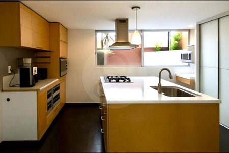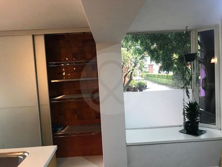Casa estilo Barragán en tres niveles en conjunto de 10 casas con un jardín comun arbolado de 500mts y piso adoquinado.