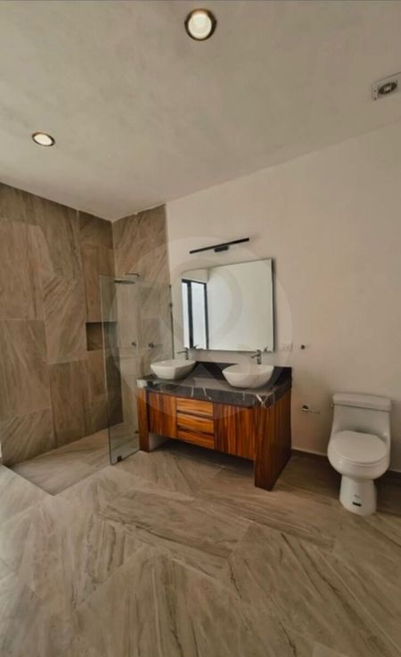 SALA, Comedor A Doble Altura CON Ventanal Y Vista PanorÁMICA Hacia EL JARDÍN Y Piscina., 2 Habitaciones Junior CON BAÑO Comleto Y Espacio DE Closet DE Pared CON Ventanales PARA Acceder A LA Piscina, LA RECÁMARA Principal CON Vestidor, Closet Y BAÑO Completo TambiÉN CON Acceso A LA Piscina., Cocina Abierta CON ISLA Desayunadora, QUE Integra EL ÁREA Social, BAÑO Completo DE Visitas, Alacena/Bodega, Piscina EN Acabado Chukum CON POZO DE Llenado Y DE Desague, AIRE Acondicionado EN SALA Y RECÁMaras.