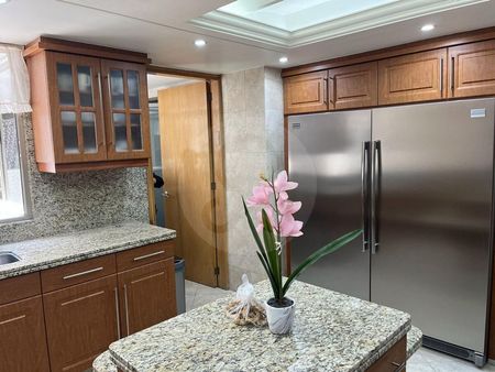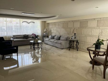 El departamento tiene 330m2 habitables, muy amplia estancia para sala y comedor, Antecomedor con balcon. cocina con isla y espacio para refrigerador y congelador, area de lavado y cuarto de servicio, 4 amplias recamaras dos de ellas comparten un baño, las otras 2 tienen su propio baño y vestidor. acogedor family room. 2 lugares de estacionamiento.