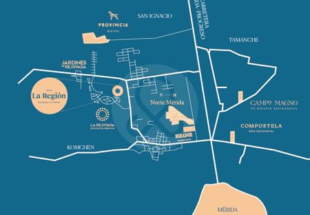 La propiedad en venta se encuentra en La Región Residencial, ubicado en la localidad de Komchén en la ciudad de Mérida, estado de Yucatán. Cuenta con una superficie total de 676.38 metros cuadrados, distribuidos en varias comodidades que incluyen alberca, asador, cancha de paddle, cancha de tenis, cantina, juegos infantiles, gimnasio y seguridad las 24 horas. El inmueble fue construido recientemente y ofrece un ambiente seguro y familiar en el tranquilo vecindario de Komchén. Perfecto para aquellos que buscan espacios amplios y amenidades de calidad. La Región es un complejo residencial conformado por 107 lotes desde 300m2, donde el azul del cielo te permitirá gozar de amenidades de lujo, pensadas en tu comodidad para disfrutar de un estilo de vida inigualable.