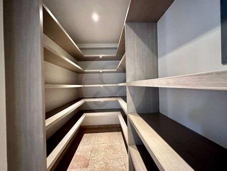 Pantry con espacio para vinos y lavavajillas; horno de convección y campana Ge Profile.