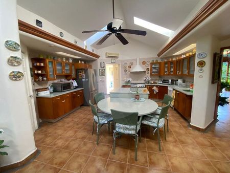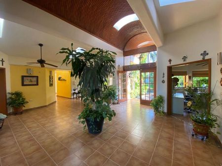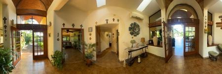 Construida en una sola planta dentro de un terreno de 2,985 m2, rodeada de hermosos jardines, árboles frutales y vegetación propia del estado.