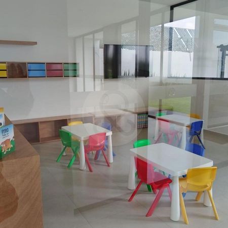 Cuenta con distintas amenidades como: salón de eventos con cocineta para 90 personas, ludoteca, gimnasio equipado, sala de juntas y parque central.