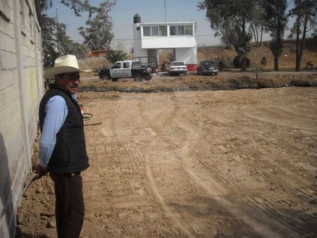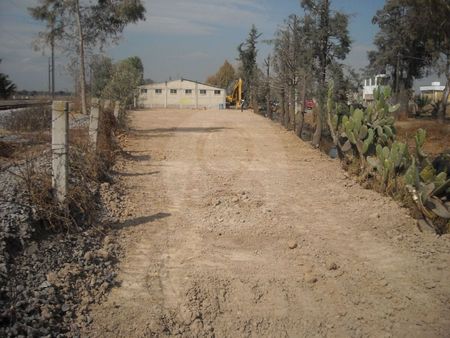 Con (490m2) de construcción, sin ninguna grieta en muros ni pisos a pesar de que esta a tan solo 15 metros de las vías del tren, acometida eléctrica trifásica, (25kw) de demanda contratada con CFE, instalaciones eléctricas para conexión de maquinaria y equipos de oficina etc. y (1422.44m2) de terreno adicional para crecimiento, marcada con la línea azul, en donde hace tres años se sacaron 18 camiones de volteo con desperdicios y se metieron 16 camiones de tepetate y se aplano el terreno.