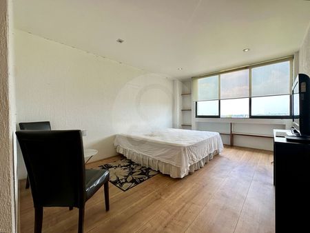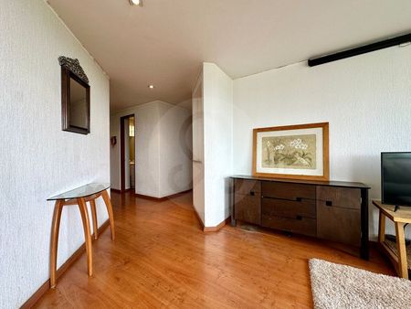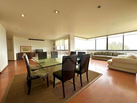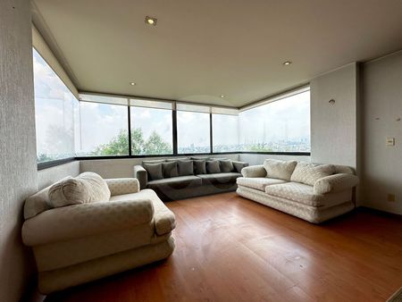 Ubicado en piso tres cuenta con muy buena distribución de espacios: Área de sala comedor, cocina con desayunador, dos recámaras, sala de televisión o estudio que puede ser tercera recámara. Una de las recámaras cuenta con baño completo y vestidor. Segundo baño completo y con tina.