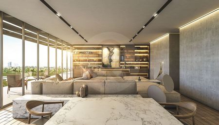 Venta de estupendo departamento de lujo a estrenar en Lomas de Reforma. Se vende con acabados en obra gris con la finalidad de que el proyecto quede de acuerdo a las necesidades particulares del interesado. Es un departamento único que tiene 701 m2 de construcción y 430m2 de terraza con una vista espectacular. La distribución es muy noble y se puede adecuar a 3 recamaras con vestidor y baño completo o 4. Cuenta con sala amplia y comedor amplio con estupendas vistas. También tiene espacio para un estudio, family room, bar, cocina muy amplia, área de servicio.