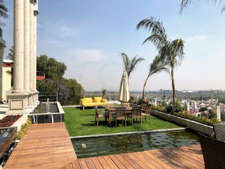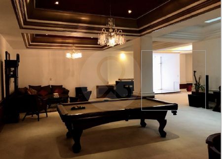 Salón de juegos con dos baños, sala de proyecciones, bar. Alberca con dos baños, spa, área de costura, 3 cuartos de servicio, jardín de 200 m (se puede ampliar). Área de exhibición para coches y departamento independiente en obra blanca en dos niveles de 400 m2 con gimnasio, dos baños y suite de visitas. Salón de fiestas para 200 personas con escenario, cocineta y dos medios baños. Bodega. 8 lugares de estacionamiento techados.