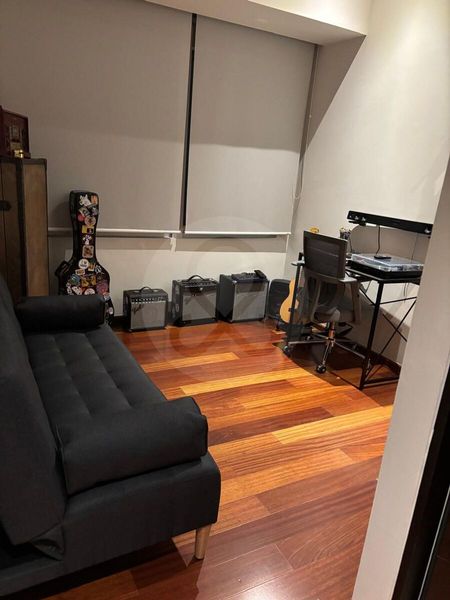 La recámara principal es un verdadero refugio: amplia, luminosa, con walk-in closet, baño completo y un balcón privado con vistas de ensueño. Las dos recámaras secundarias cuentan con clóset y baño, una de ellas con balcón propio. El cuarto de servicio fue adaptado como family room, y el departamento incluye área de lavado.