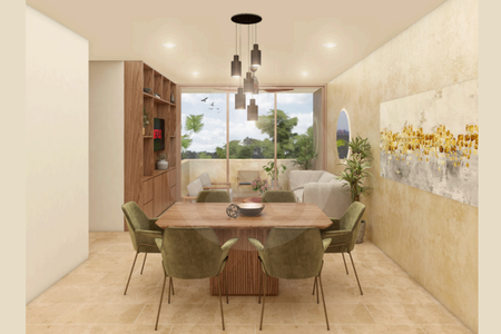 En la planta baja, encontramos una sala - comedor con balcon, cocina integrada y cuenta con cuarto de lavado y cuarto de servicio con su baño completo.